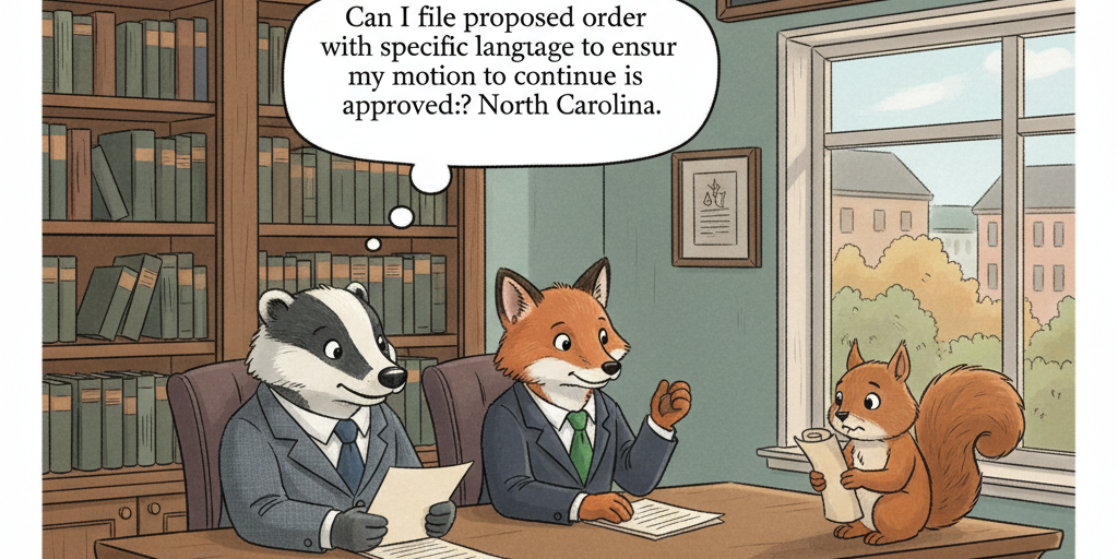 Can I file a proposed order with specific language to ensure my motion to continue is approved? – North Carolina