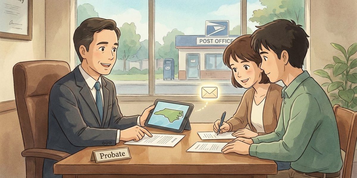 When a person inherits a North Carolina house through a will but the deed still shows the decedent as the owner, the key question is whether the paperwork to open the estate and record the documents needed to update title can be completed while the heir or personal representative lives in another state. In North Carolina, the main decision point is whether the Clerk of Superior Court in the county where the decedent lived (or where the property sits) will accept the filings and qualification steps by mail and remote notarization, or whether an appearance is required to complete the estate opening and deed-related steps.