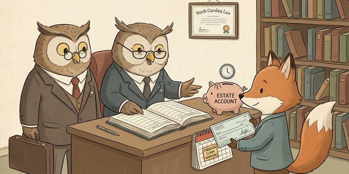 In North Carolina probate, can a qualified administrator open an estate bank account when the decedent had no active bank accounts, and must the house-sale proceeds be held during the creditor claim window before any distribution to heirs? The issue usually comes up when the estate’s only meaningful asset is real property, the administrator needs a place to deposit closing funds, and creditors may still have time to file claims. The same question often includes whether the administrator can pay ongoing property expenses, get reimbursed, and hire a realtor while keeping the estate’s money properly separated and documented.