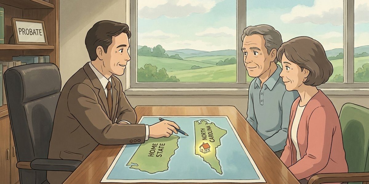An ancillary estate is a North Carolina probate proceeding used when a person who lived in another state dies owning property in North Carolina. It is usually needed when the deceased spouse owned North Carolina real estate in an individual name, or when a local transfer cannot be completed through the out-of-state estate alone. In some cases, North Carolina personal property can be collected without opening a full ancillary estate, but real estate and title issues often require a filing with the Clerk of Superior Court in the county where the property is located.