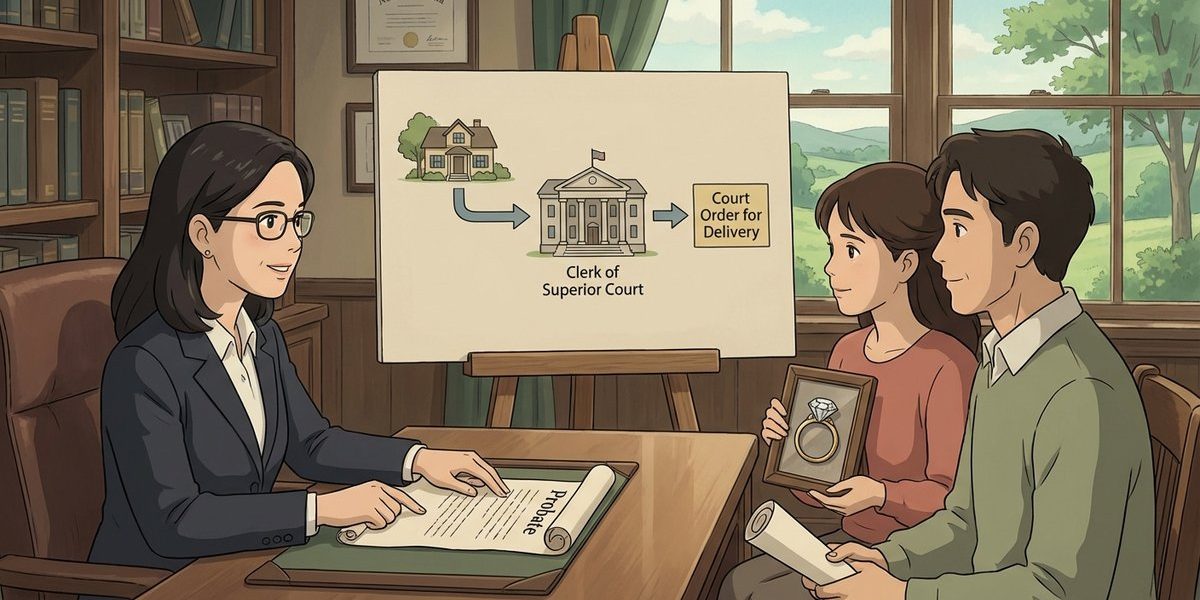 1. Who files: The beneficiary/devisee named to receive the heirloom (or counsel on that person’s behalf). Where: The Clerk of Superior Court in the county where the decedent was domiciled (the estate file is kept there). What: A written demand to the personal representative for delivery of the specific bequest, followed (if needed) by a verified petition in an estate proceeding requesting an order compelling the personal representative to deliver the item or to follow a court-approved transfer method. When: As soon as it becomes clear the executor will not voluntarily comply; delays can create practical problems, and probate timing can matter if the will has not been offered for probate.